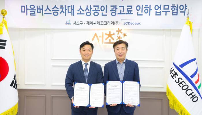 구는 지난 2일 글로벌 옥외광고 기업 제이씨데코코리아(주) 김주용 대표이사와 업무협약(MOU)을 체결하고, 지역 내 마을버스 승차대 7곳에 설치된 14기의 디지털 광고판을 소상공인이 저렴하게 이용할 수 있도록 했다.